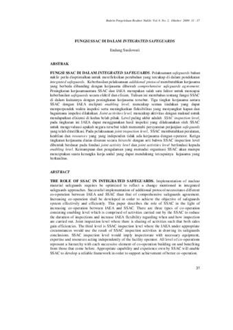 FUNGSI SSAC DI DALAM INTEGRATED SAFEGUARDS. Pelaksanaan safeguards bahan nuklir perlu dioptimalkan untuk merefleksikan perubahan yang tercakup di dalam pendekatan integrated safeguards. Keberhasilan pelaksanaan additional protocol membutuhkan kerjasama yang berbeda dibanding dengan kerjasama dibawah comprehensive safeguards agreement. Peningkatan kerjasamaantara SSAC dan IAEA merupakan salah satu faktor untuk mencapai keberhasilan safeguards secara efektif dan efisien. Tulisan ini membahas tentang fungsi SSAC di dalam kaitannya dengan peningkatan kerjasama tersebut. Tiga tingkat kerjasama antara SSAC dengan IAEA meliputi enabling level, mencakup semua tindakan yang dapat memperpendek waktu inspeksi serta meningkatkan fleksibilitas yang menyangkut kapan dan bagaimana inspeksi dilakukan. Joint activities level, mencakup aktivitas dengan maksud untuk mendapatkan efisiensi di kedua belah pihak. Level paling akhir adalah SSAC inspection level, pada tingkatan ini IAEA dapat menggunakan hasil inspeksi yang dilaksanakan oleh SSAC untuk mengevaluasi apakah negara tersebut telah memenuhi persyaratan perjanjian safeguards yang telah diratifikasi. Pada pelaksanaan joint inspection level, SSAC membutuhkan peralatan, keahlian dan resources yang yang independen tidak ada kerjasama dengan operator. Ketiga tingkatan kerjasama diatas disusun secara hirarchi dengan arti bahwa SSAC inspection level dibentuk berdasar pada fondasi joint activity level dan joint activities level berfondasi kepada enabling level. Kemampuan dan pengalaman yang memadai organisasi SSAC akan mampu menciptakan suatu kerangka kerja andal yang dapat mendukung tercapainya kejasama yang berkualitas.