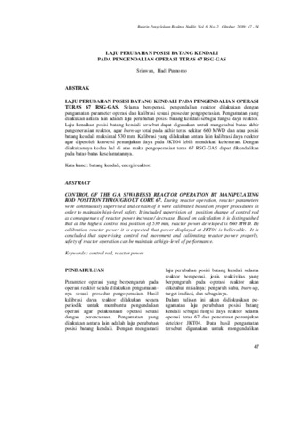 LAJU PERUBAHAN POSISI BATANG KENDALI PADA PENGENDALIAN OPERASI TERAS 67 RSG-GAS. Selama beroperasi, pengendalian reaktor dilakukan dengan pengamatan parameter operasi dan kalibrasi sesuai prosedur pengoperasian. Pengamatan yang dilakukan antara lain adalah laju perubahan posisi batang kendali sebagai fungsi daya reaktor. Laju kenaikan posisi batang kendali tersebut dapat digunakan untuk mengetahui batas akhir pengoperasian reaktor, agar burn-up total pada akhir teras sekitar 660 MWD dan atau posisi batang kendali maksimal 530 mm. Kalibrasi yang dilakukan antara lain kalibrasi daya reaktor agar diperoleh konversi penunjukan daya pada JKT04 lebih mendekati kebenaran. Dengan dilakukannya kedua hal di atas maka pengoperasian teras 67 RSG-GAS dapat dikendalikan pada batas-batas keselamatannya.