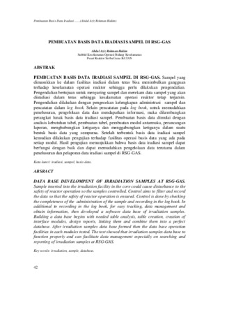 Abdul Azis Rohman Hakim, AARH (2014) PEMBUATAN BASIS DATA IRADIASI SAMPEL DI RSG-GAS. Buletin "Reaktor". pp. 42-55. ISSN ISSN: 0216-2695