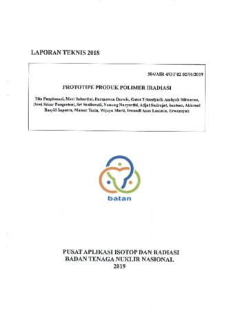 Puspitasari, Tita and Suhartini, Meri and Darwis, Darmawan and Trimulyadi, Gatot and Suliwarno, Ambyah and Pangerteni, Dewi Sekar and Susilawati, Sri and Nuryanthi, Nunung and Sudradjat, Adjat and Santoso, Santoso and Saputra, Akhmad Rasjid and Yasin, Mamat and Murti, Wijaya and Lasimin, Iswandi Anas and Erwansyah, Erwansyah (2018) Prototip Produk Polimer Radiasi. Technical Report. PAIR-BATAN, Jakarta.
