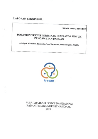 Achdiyat, Achdiyat and Aminudin, Muhammad and Hermanto, Agus and Prihantingsih, Prihatiningsih and Alfrida, Alfrida (2018) Dokumen Teknis Perizinan Iradiator Untuk Pengawetan Pangan. Technical Report. PAIR-BATAN, Jakarta.