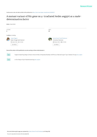 Beni, Ernawan and Harry Nugroho Eko, Surniyantoro and Irawan, Sugoro and Usman Sumo, Friend Tambunan (2019) A mutant variant of Nix gene on γ-irradiated Aedes aegypti as a male determination factor. Biodiversitas, 20 (3). pp. 893-899. ISSN 2085-4722