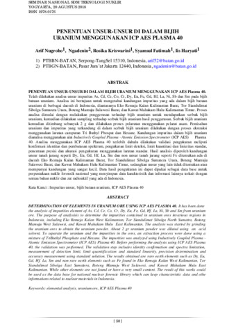 Kata Kunci : Impuritas unsur, bijih batuan uranium, ICP AES Plasma 40