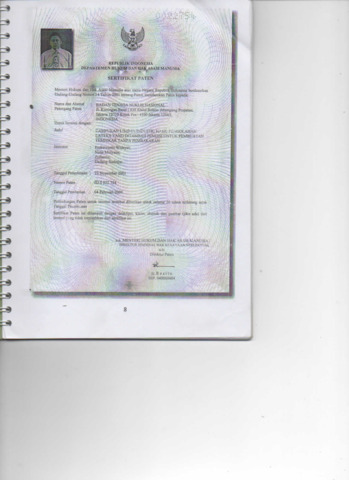 Mentri Hukum dan Hak Asasi Manusia atas nama Negara Republik Indonesia berdasarkan Undang Undang Nomor 14 Tahun 2001 tentang Paten.