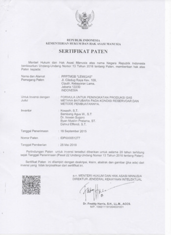 2018 2. Paten Granted Gas Metana Irawan Sugoro.pdf