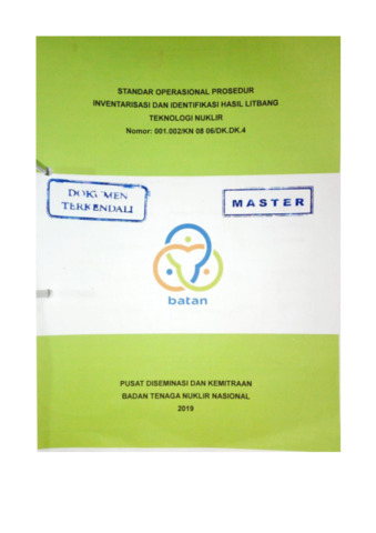 Susanti, Eva and Pranoto, Agus Teguh and Krisna, Sari Nila (2019) Standar Operasional Prosedur Inventarisasi dan Inventarisasi Hasil Litbang Teknologi Nuklir. Manual. Pusat Diseminasi dan Kemitraan.