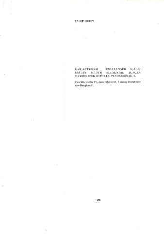 Ristin, Evarista and Melawati, June and Hutabarat, Tommy and Pratikno, Bungkus (1999) Karakterisasi Unsur-Unsur Dalam Batuan Sulfur Elemental Dengan Metode Spektrometri Pendar Sinar-X. Technical Report. PAIR-BATAN, Jakarta.
