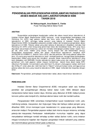 Wahyuningsih, Sri and Sugiarto, Arcadatam and Farida, Farida (2018) PENGENDALIAN PERLENGKAPAN KESELAMATAN RADIASI DAN AKSES MASUK KELUAR LABORATORIUM DI IEBE TAHUN 2018. Hasil-Hasil Penelitian EBN Tahun 2018, - (-). pp. 324-332. ISSN 0854-5561