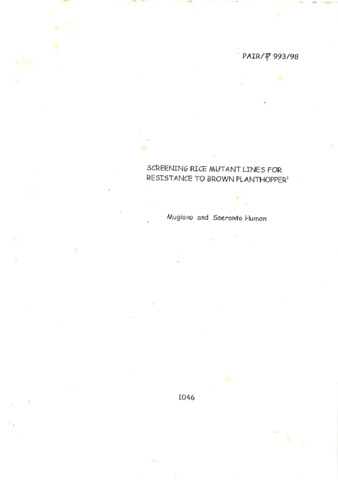 Mugiono, Mugiono and Human, Soeranto (1998) Screening Rice Mutant Lines for Resistance to Brown Plantropper. Technical Report. PAIR-BATAN, Jakarta.