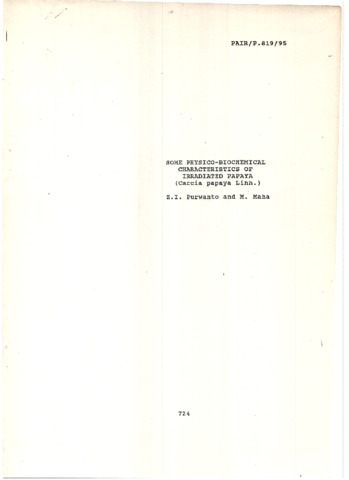 Purwanto, Zubaidah I. and Maha, Munsiah (1995) Some Physico-Biochemical Charrateristics of Irradiated Papaya (Carcia papaya Linn.). Technical Report. PAIR-BATAN, Jakarta.