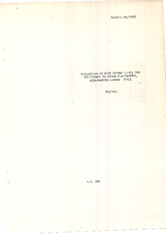 Mugiono, Mugiono (1985) Evaluation of Rice Mutant Lines for Resistece Brown Plantopper, Nilaparvata Lugens Stall. Technical Report. PAIR BATAN, Jakarta.