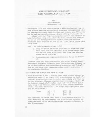 Poernomo, Mundi (1976) Aspek perundang-undangan dari pembangunan suatu PLTN. In: Pemilihan Lokasi Pusat Listrik Tenaga Nuklir, 10-12 April 1975, Karangkates, Jawa Timur.