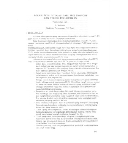 Soehirno, Soehirno (1976) Lokasi PLTN Ditinjau Dari Segi Ekonomi dan Teknik Perlistrikan. In: Pemilihan Lokasi Pusat Listrik Tenaga Nuklir, 10 - 12 April 1975, Karangkates, Jawa Timur.