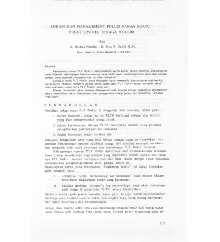 Nudin, Martias and Subki, Iyos R. (1976) Lokasi dan Management Polusi Panas Suatu PLTN. In: Pemilihan Lokasi Pusat Listrik Tenaga Nuklir, 10 - 12 April 1975, Karangkates, Jawa Timur.